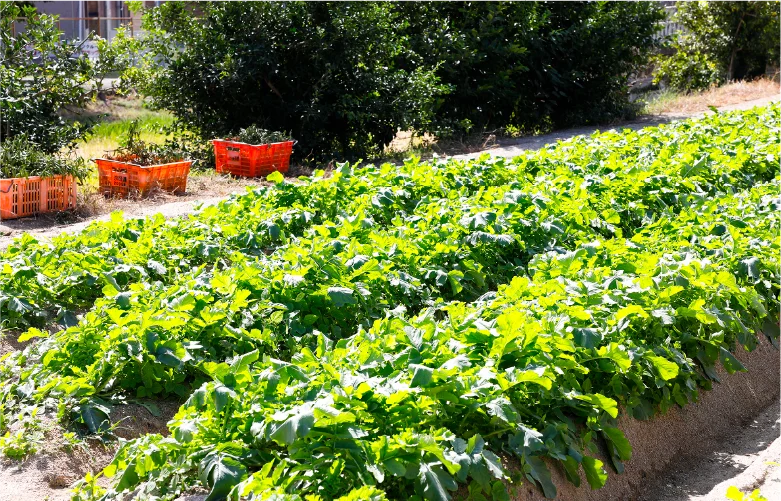 粟津農園の野菜はすべて、屋外の畑で行う露地栽培。直射日光や冬の霜にさらされることにより、風味や栄養価が増すのだとか。