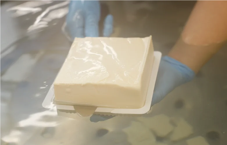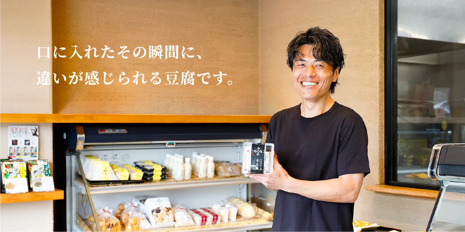 東田さんにとってよい豆腐とは、見た目がきれいで、ツヤとハリがあるものなのだそう。「ひとの肌と同じで、ピチピチとしたハリとツヤのある豆腐。そういう豆腐は、食感もしっかりしていて、日にちが経ってもずっとおいしいんです」